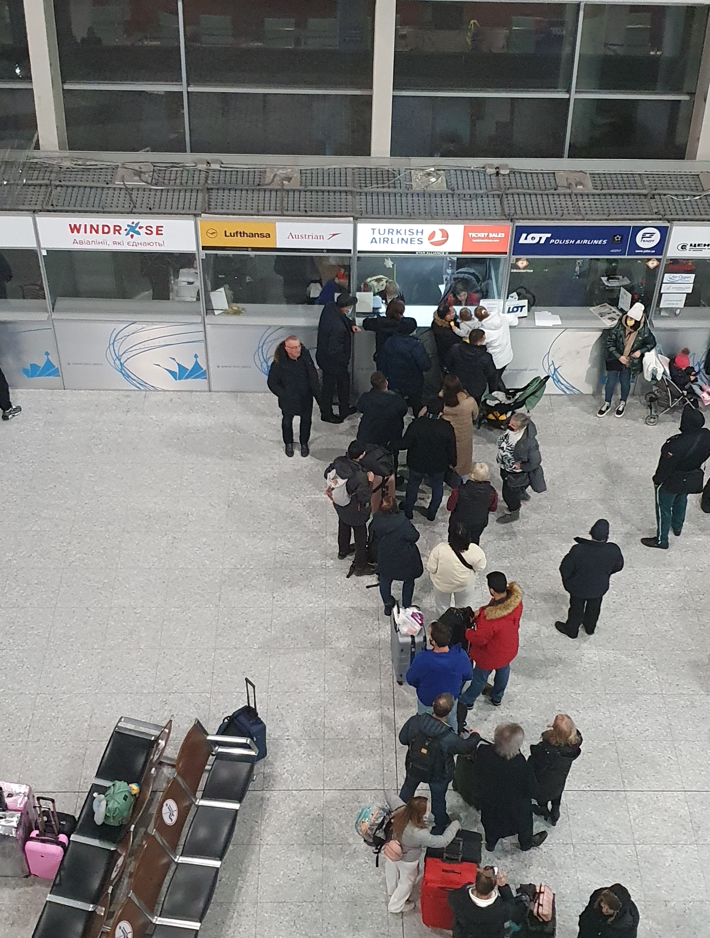 Жодних оголошень в аеропорту. При цьому більшість людей нічого не знають про проблеми з погодою і вірять, що через 15 хвилин полетять у Київ.