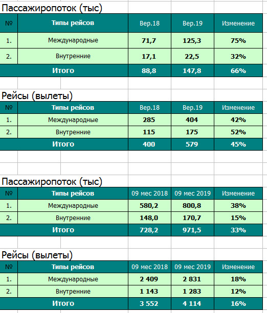 Статистика аэропорта Харьков за 9 месяцев и сентябрь 2019 года