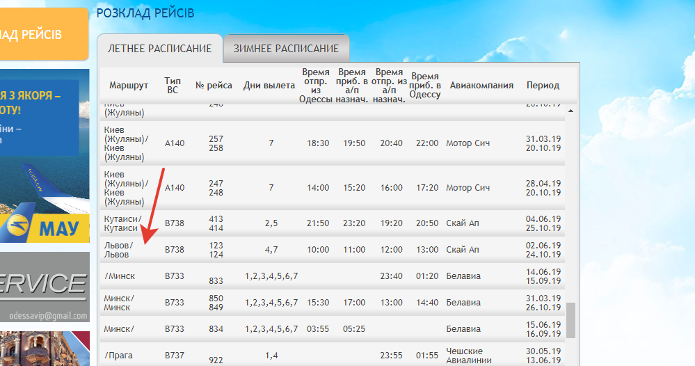 на сайте аэропорта Одесса - в летнем расписании появился уже и Львов