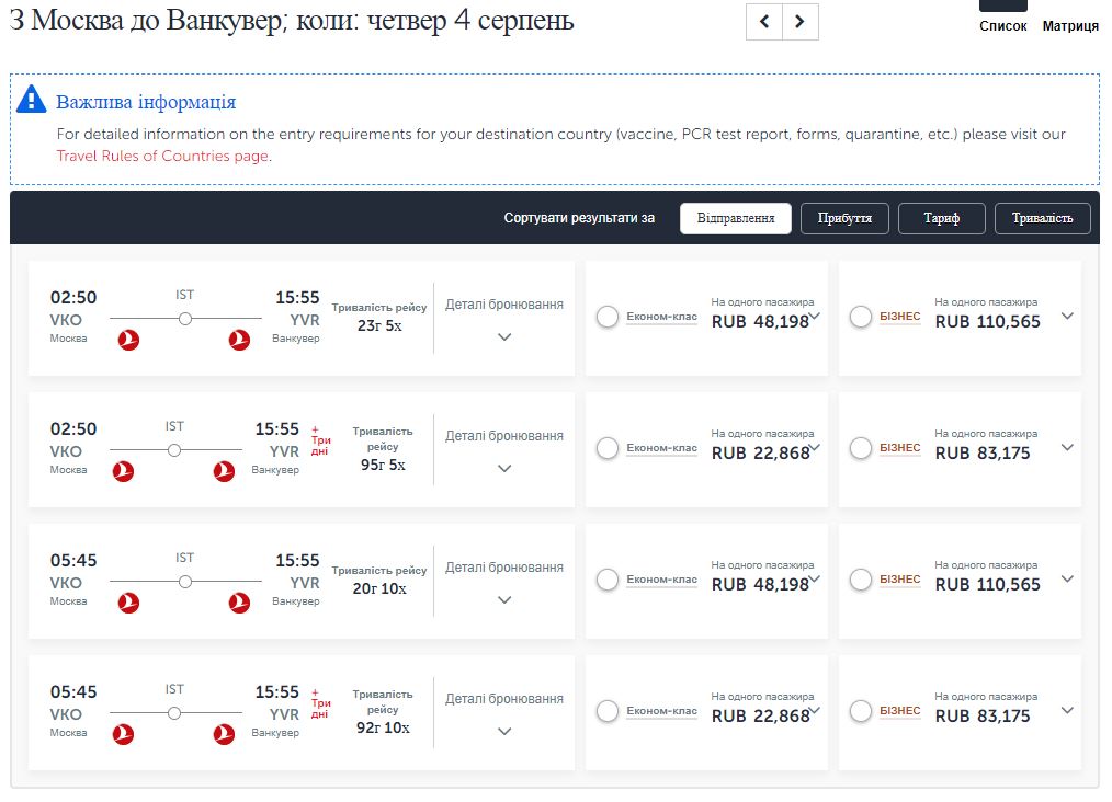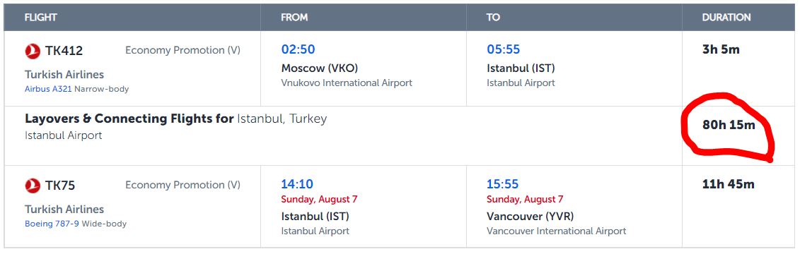 глянув ще раз. Можна полетіти найближчим рейсом із стикуванням 5 годин, а можна наступним із стикуванням 80 годин.