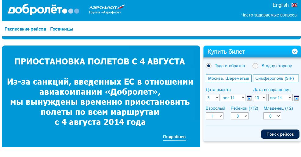 3 августа 2014 года, Москва. Авиакомпания «Добролёт» временно приостанавливает полеты с 00:00 мск 4 августа текущего года.