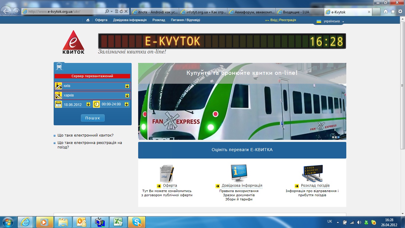Кто-то говорил, что до июня укржелезница откроет собственную продажу билетов на сайте uz.gov.ua, которая, как все надеялись, будет лучше существующей, а e-kvytok это ооо "рога и копыта". Так вот, насколько я сейчас вижу на uz.gov.ua встроен поиск e-kvytok.org.ua