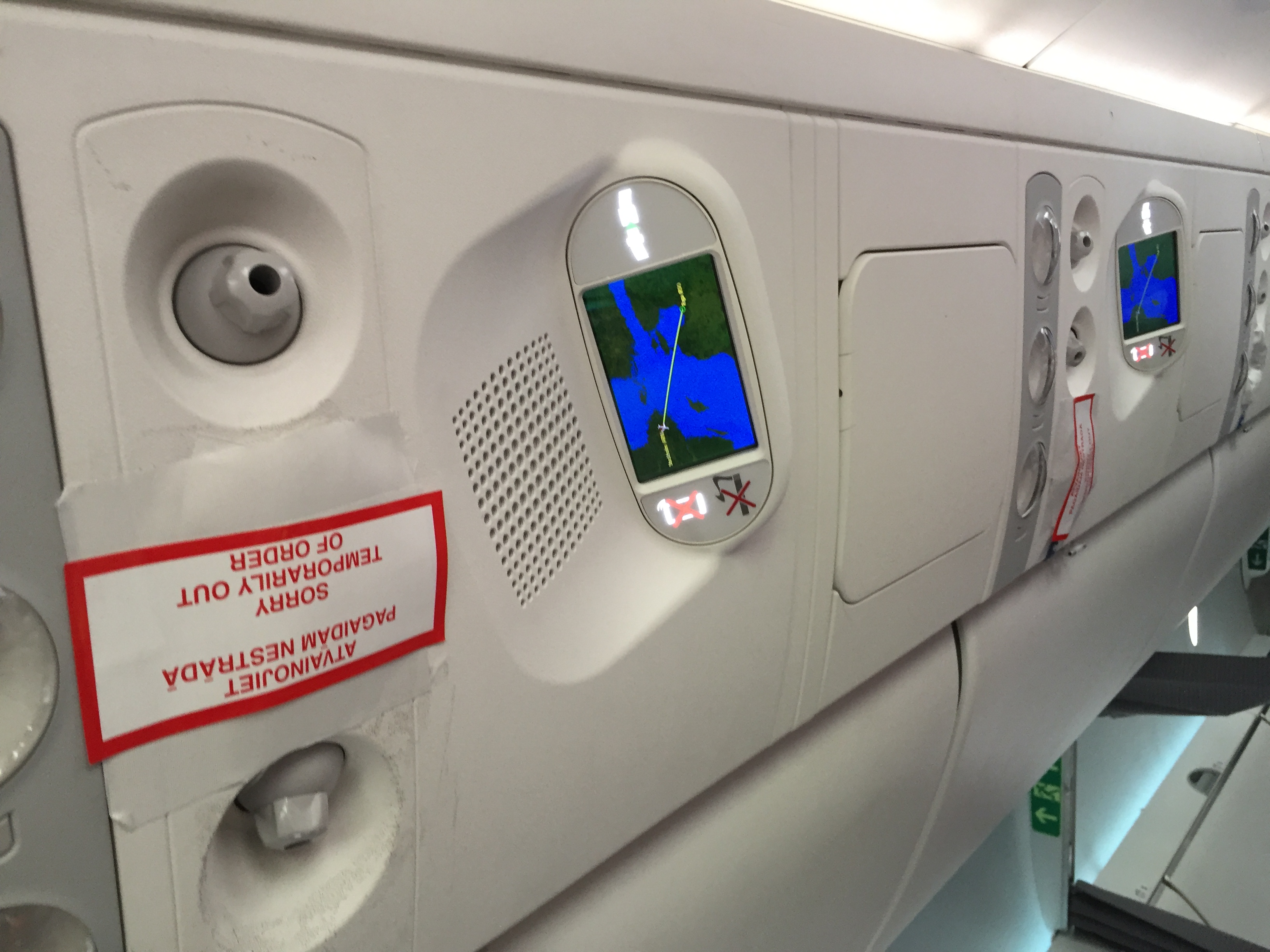 Пару впечатлений от А220. Сразу, как заходиль на борт, чувстсвуется, что новый самолёт. Болтики включают в нём boarding music (на других типах этого нет). Автоматически получили места в 7м ряду—места для ног много, не знаю, вотвсех ли рядах так. Окна большие—вытянуты вверх. Летит тихо. В верхнюю панель встроены маленькие экранчики (размером с телефонный), на который выводят инфу о полете и пересадочных гейтах. Но—панели с вентиляцией над головой, как из АН-148. Какие-то не хай-тек совсем. К тому же, что-то уже не работало.