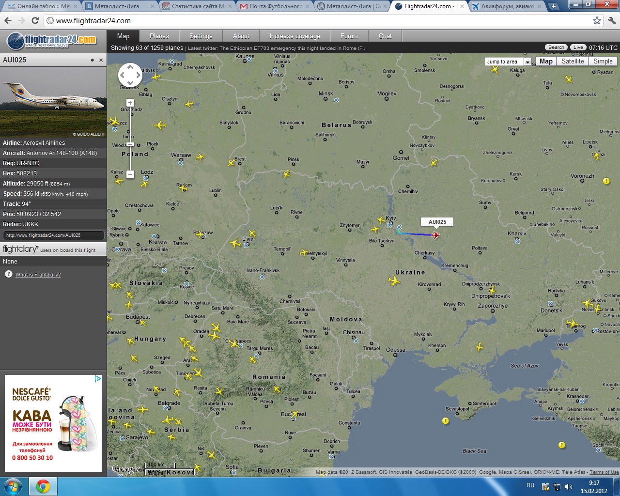 Кстати, самолет МАУ начали показывать на Flightradar24. Супер!!!