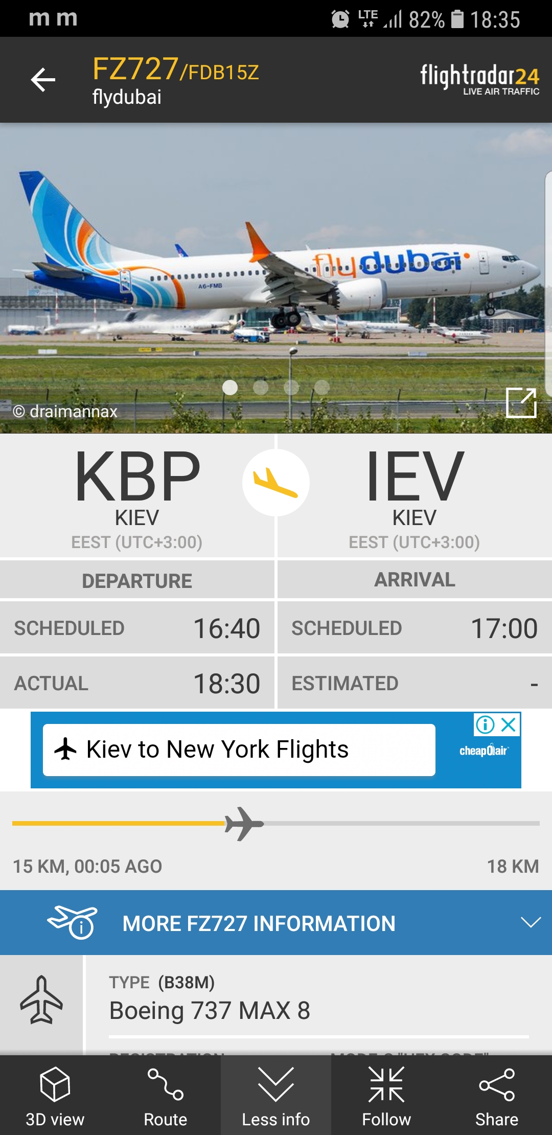 На 9:40 сегодня запланирован вылет. Борт всю ночь простоял в Жулянах.