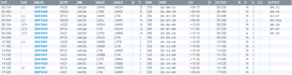 Розклад Браво на сьогодні, який вказаний в системі Eurocontrol