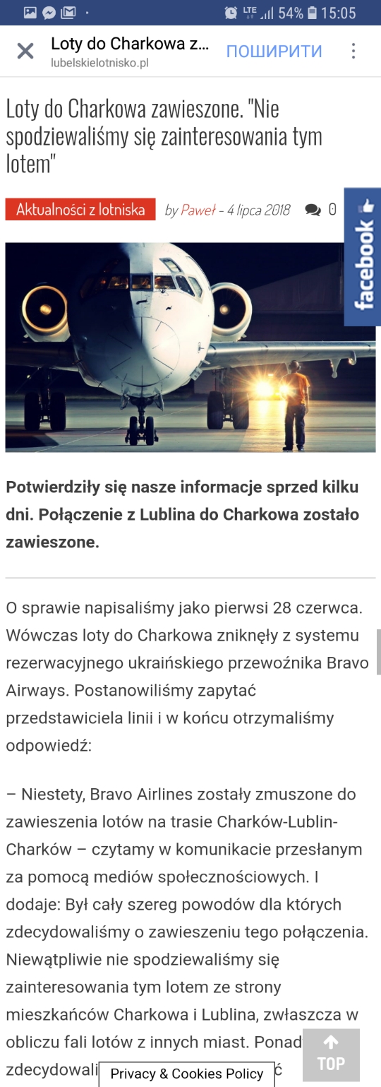 Цей момент дещо підтверджує мою гіпотезу:cyclone писав: ↑04 липня 2018, 18:18Ок, ну а через две недели эти дотации закончились? Я понимаю, что у них сейчас не хватает самолётов, но тем не менее, это какое планирование нужно иметь, чтобы через две недели отменить и прямо говорить, что мы и не сомневались, что никто туда не захочет летать?popTAB писав: ↑04 липня 2018, 18:04Польські дотаціїcyclone писав: ↑04 липня 2018, 18:02 Без сомнения, мы не ожидали интереса к этому рейсу от жителей Харькова и Люблина, особенно учитывая волну полётов из других городов.