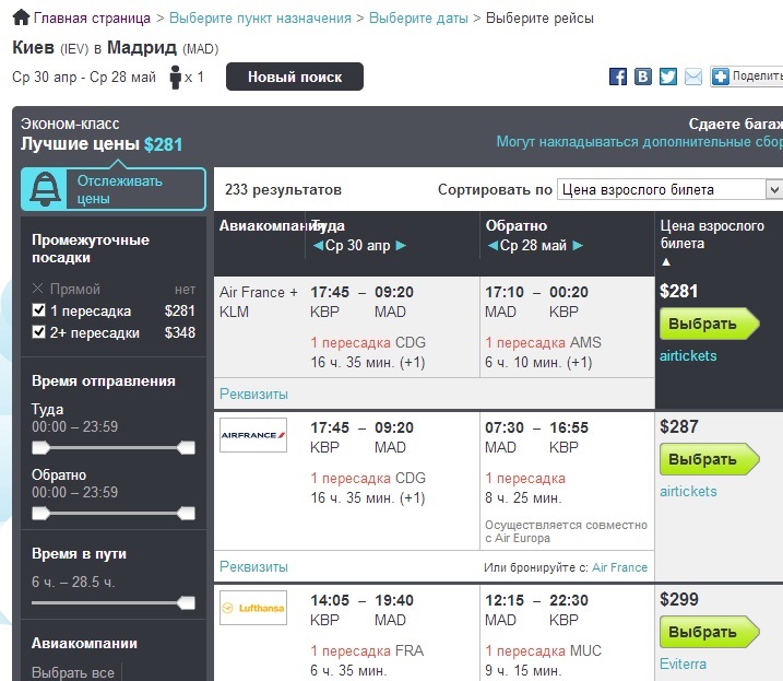 Нет, очень дешево только без багажа. С багажом - те же самые 200 долл. На "удобные" даты вообще цены не вменяемые. Если конкретно - искал, например, Мадрид под перелет в Южную Америку в мае. Дешевле всего клм-аф, через де голя - 30 долл до борисполя, 30 обратно 275 долл рт до Мадрида. Итого 335 долл. Виззы на такие же даты 400 долл + 80 долл багаж + 250 долл из Варшавы до Мадрида классиками с пересадками. Итого 730 долл и лишняя пересадка. Разница есть.mischko писав:Wizz Air до Варшави, ні? Звідти багато куди можна доїхати/долетіти. Якщо брати квитки заздалегідь, то навіть дуже задешево.aveuser писав:Прикинув куда хочется поехать в 2014 заметил, что из Харькова смысла лететь нет.