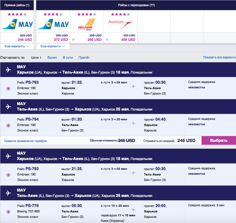 Я говорю о рейсе Харьков-Одесса, а не Одесса-Тель-Авив