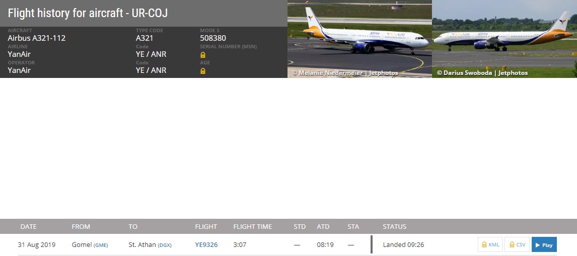 Airbus A321 -112 765 UR-COJ YanAir ferried 30aug19 GME-DGX, for part-out & scrap ex XY-AGN