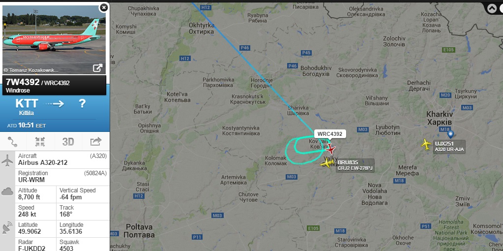 Чартер не выдержал, улетел в Киев. А беларусы и Атлас ещё кружатся.