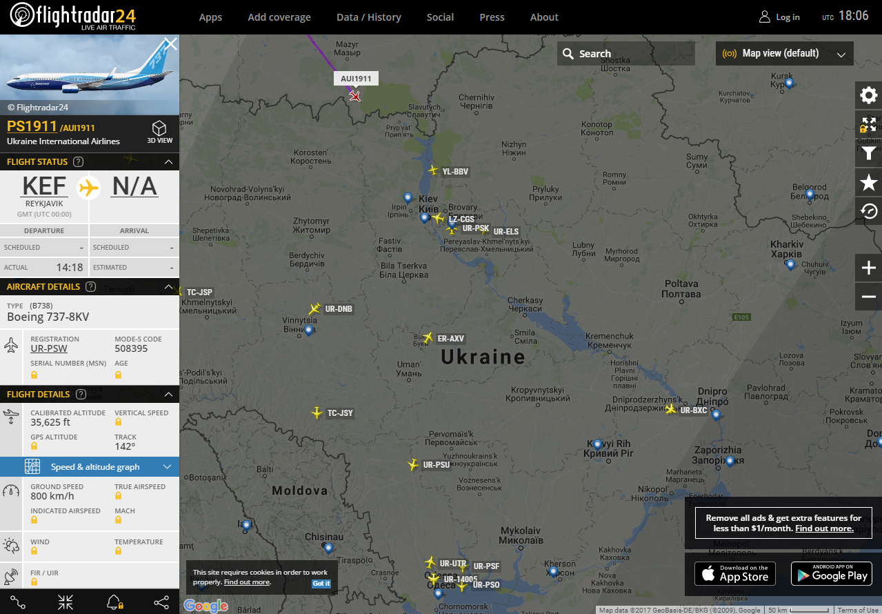 UR-PSW Boeing 737-8KV(WL) Ukraine International Airlines CY186 2x CFMI CFM56-7B24E 03. Apr 2017
