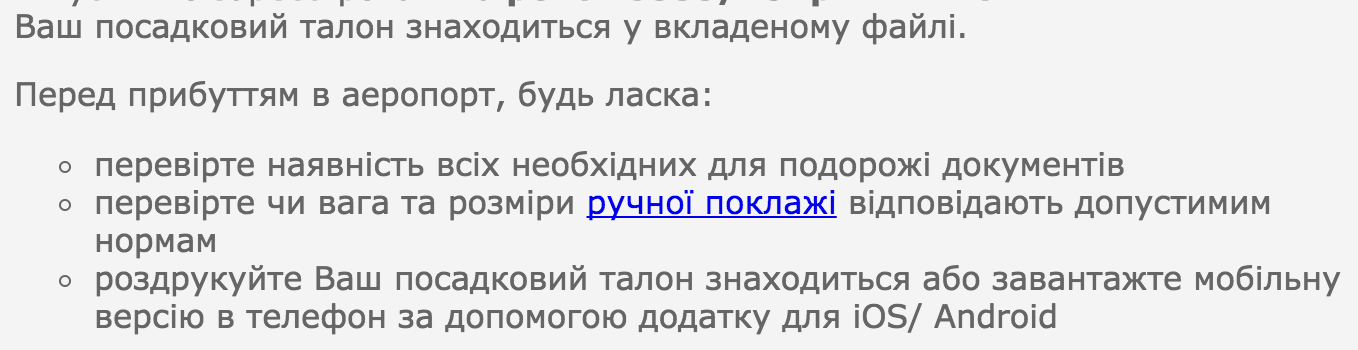 Утка, поправьте письмо с посадочными талонами. Последний пункт явно поломался.