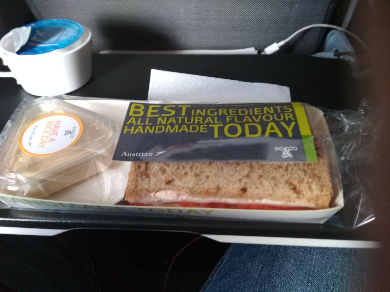 Austrian, 13.12.19, VIE-ORD (снек после взлета, горячее питание, сэндвич перед посадкой). Air France и КЛМ на рейсах в США в 2016 кормили и поили, мягко говоря, посытнее