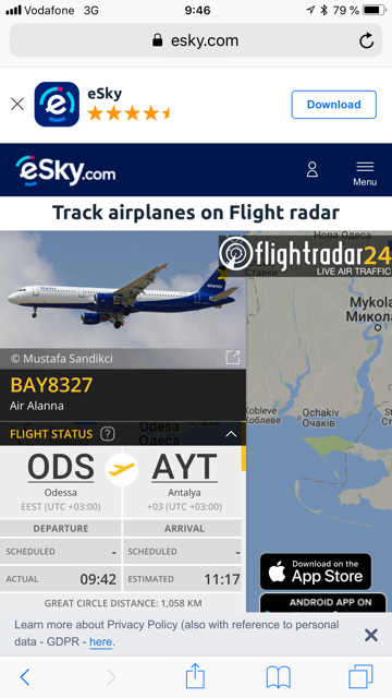 такой вот борт под позывными браво c Одессы в Анталию улетал. Думаю, с Харькова он же.