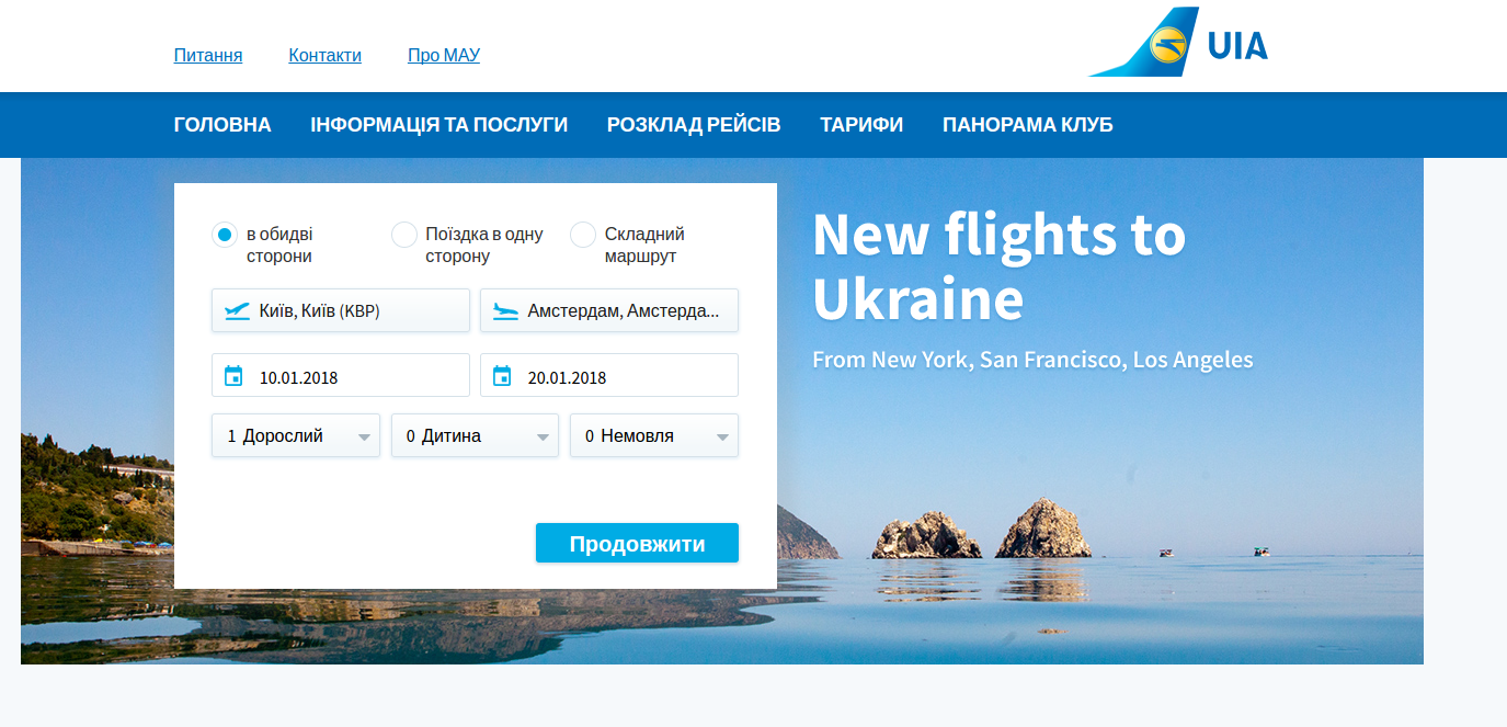 Direct non-stop flights from New York to Kiev are operated by Ukraine International Airlines, while New York - San Francisco and New York - Los Angeles flights are operated in partnership with United Airlines and Virgin America.
