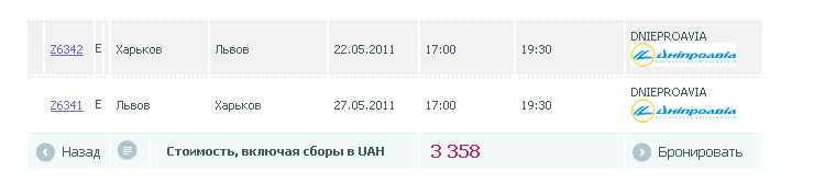 Lvov Dniproavia 10:00 12:30 From 01.05.11 to 29.05.11