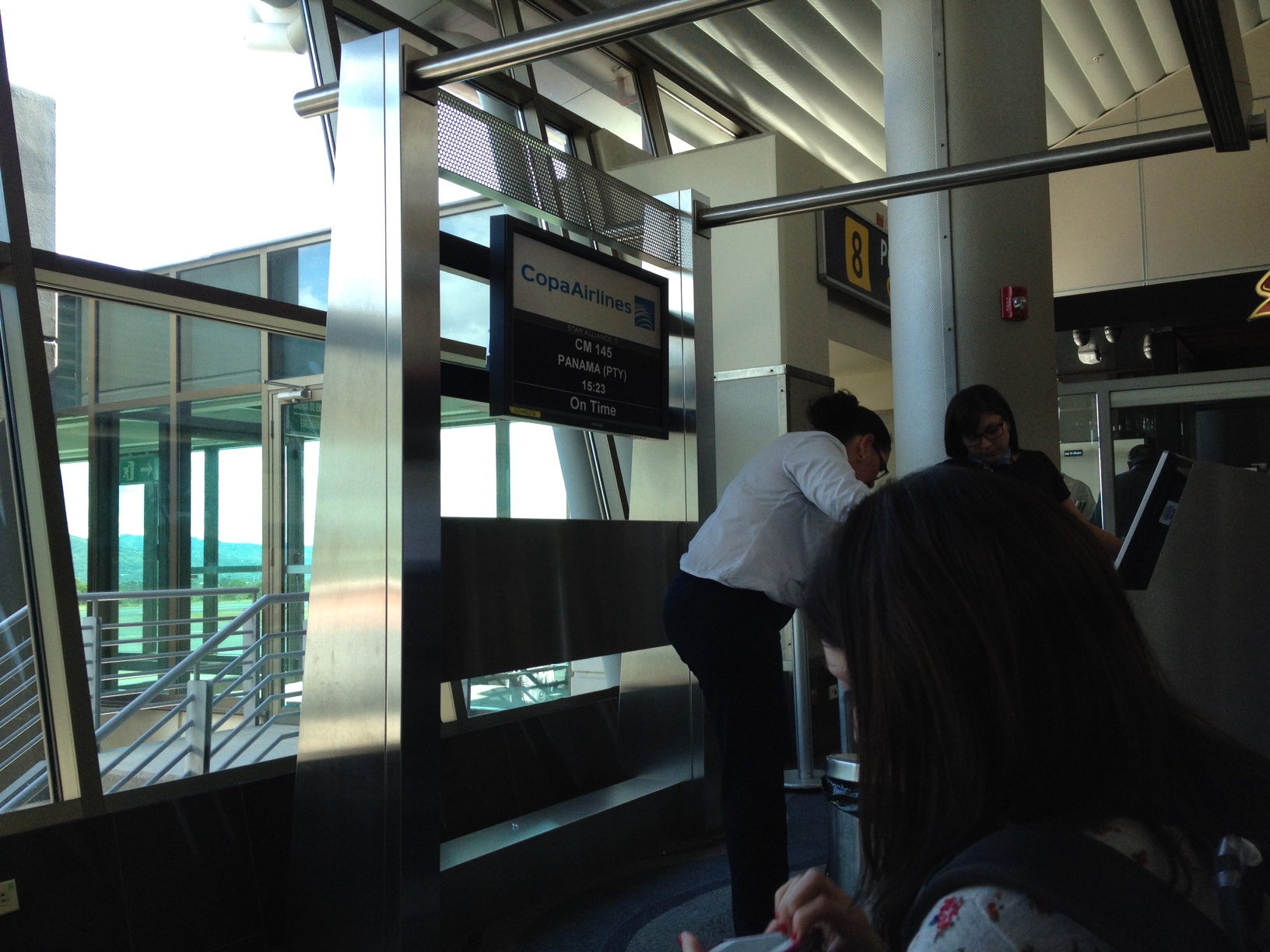 После контроля безопасности попадаешь в зону дюти-фри. Я все ждал паспортного контроля, но его так и не было,что меня несказанно удивило. Теперь у меня в паспорте стоит только штамп на въезд в Коста-Рику, а штампа на выезд нет. На табло на нашем гейте высвечивалась информация по отправлению нашего рейса в Панаму. Собственно, информация заключалась только в названии места назначения, номера рейса и времени его отправления. О времени начала посадки не было написано ни слова.