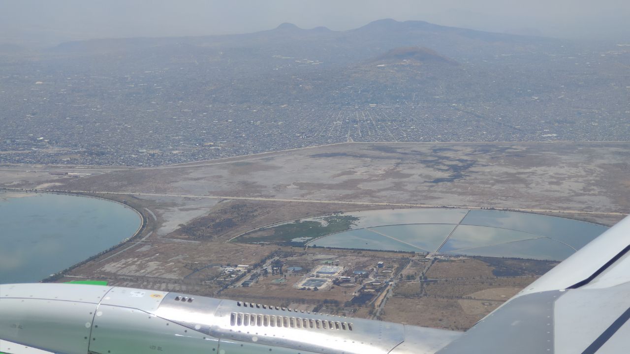 Город гор Монтеррей окружён горами, а Мехико сам как гора. Я не знал этого и был весьма удивлён, когда увидел на развлекательной системе по прилёту высоту 2300м на морем. Может быть от этого воздух там был комфортнее по температуре, хотя днём тоже жарко, и я там в первый же день прогулки обгорел.