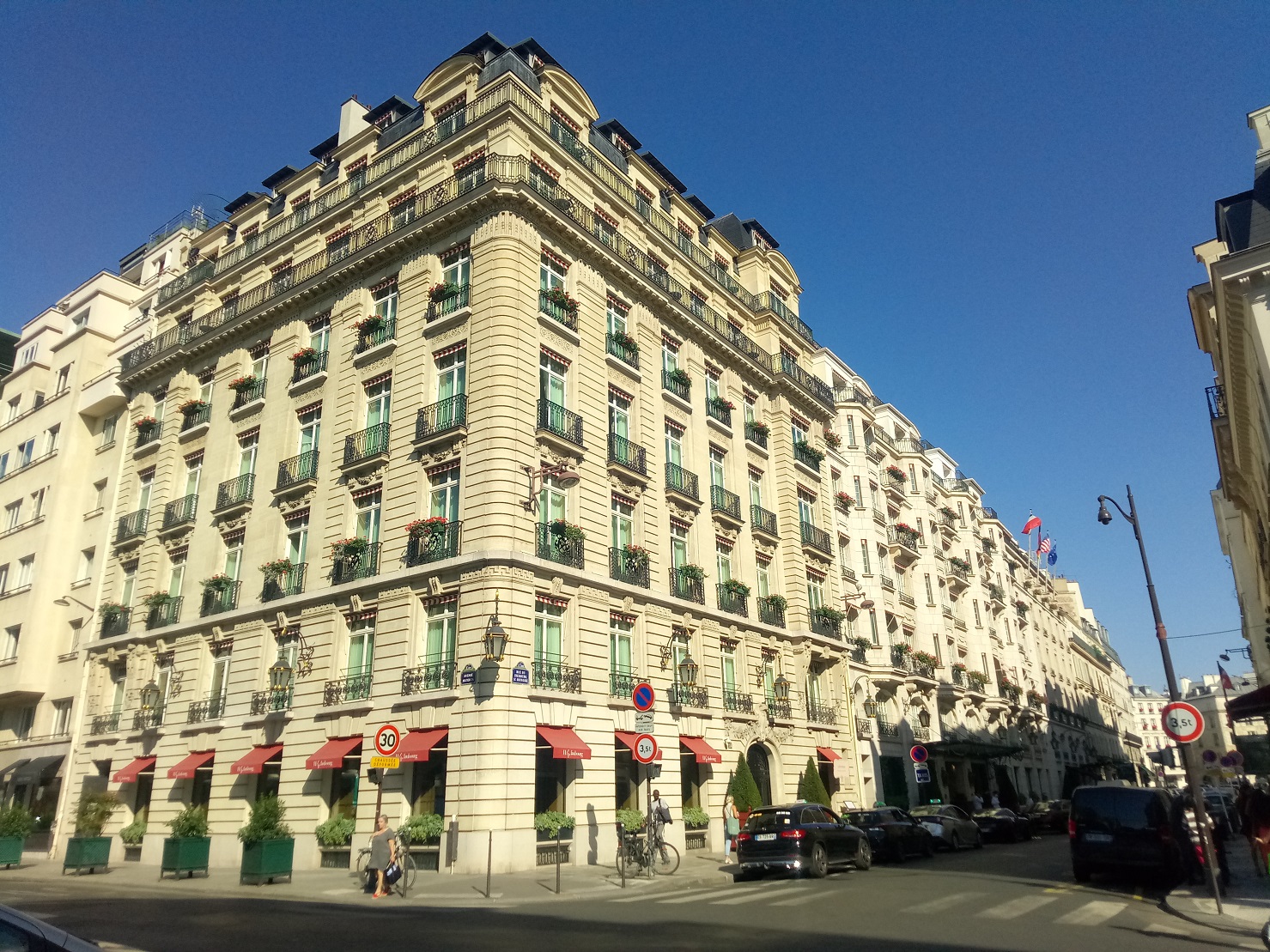 Маршрут своей первой прогулки по центру Парижа я составил таким образом, чтобы пройти мимо всех палас-отелей. Но все же один отель, Shangri La, не вышло снять, так как пришлось сильно изкривить маршрут. Зато ехал мимо него на машине.