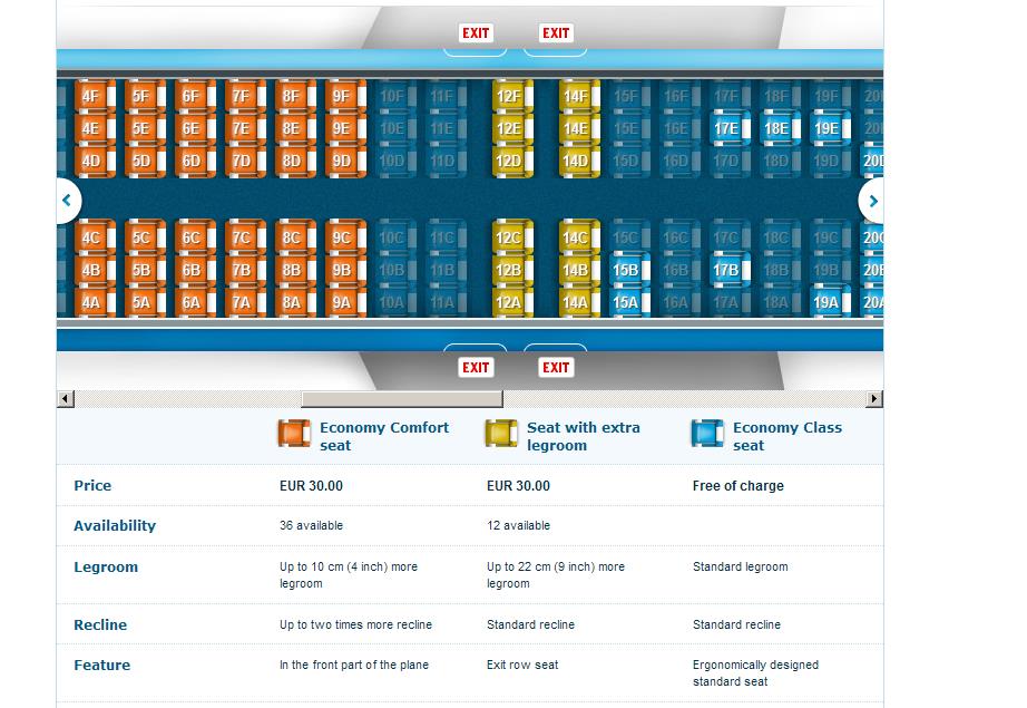 Интерестно - в аэропорту они на эти места бесплатно сажать будут, если загрузка полная, а во время онлайн чекина эти места не раскупили?AlexK писав:Новшество от КЛМ на этапе онлайн-чекина. Такая табличка высветилась для рейса Киев-Амстердам. Для следующего перелёта из Амстердама в Ниццу никаких "extra economy comfort с в два раза больше recline" не предлагалось.