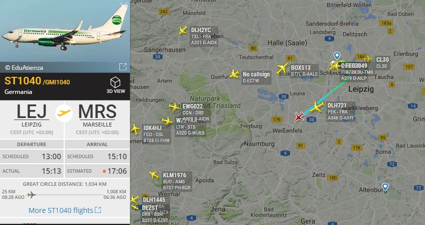 RB Лейпциг вылетел в Марсель на 735 от Germania. В ЛЕ команда всегда с этой авиакомпанией