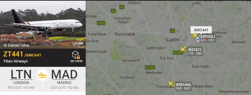 Арсенал вылетел в Мадрид на 757 G-ZAPX от Titan airways. Вчера на нем летел Ливерпуль в Рим. Команда в еврокубках всегда с Titan airways.