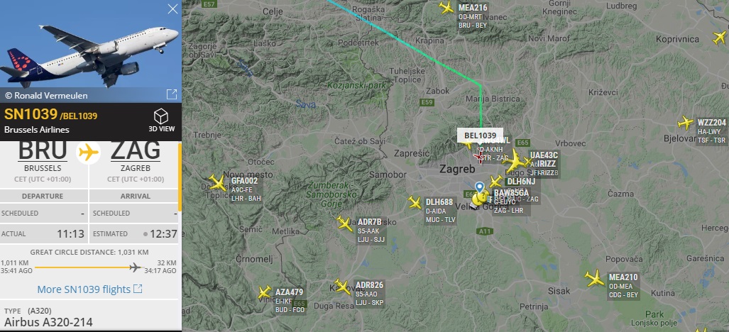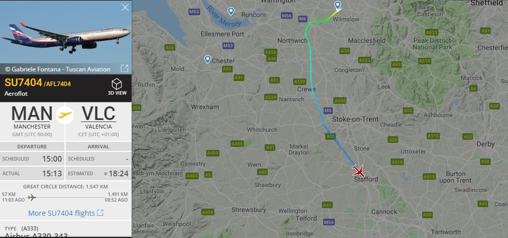 В понедельник также летел ЦСКА в Мадрид на A320 от Аэрофлота, но не на своем брендированном VP-BWD.