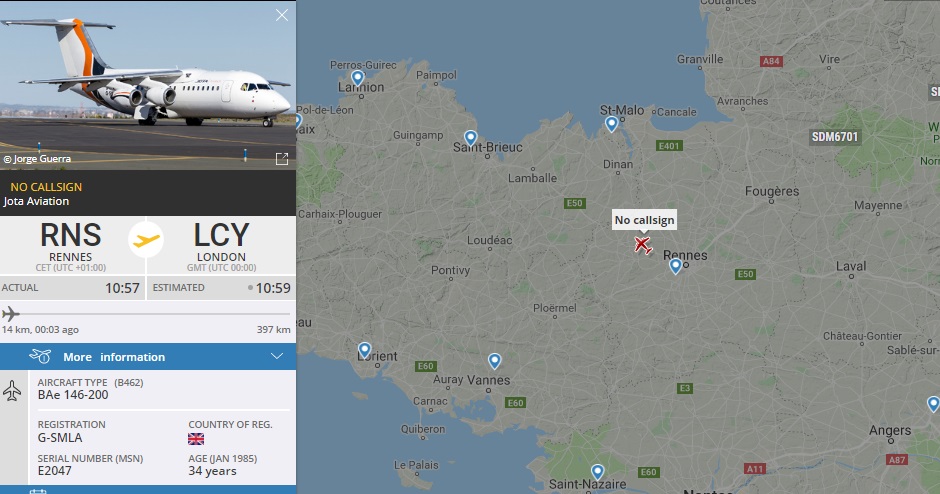 Rennes – Avro85, Jota Aviation. Команда летает разными ак. ВС в бизнесс классе.