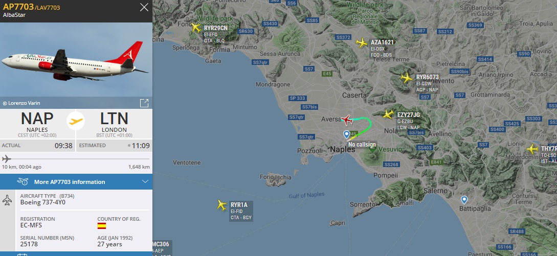 Napoli - B737, Albastar. Команда с этой ак в данном сезоне в еврокубках.