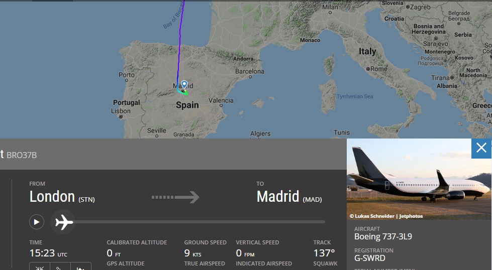 Завтра G-SWRD (737-300WL) повезе Тотенхам о 17:00UTC з Стенстеда в Мадрид на Суботню гру з Ліверпулем.