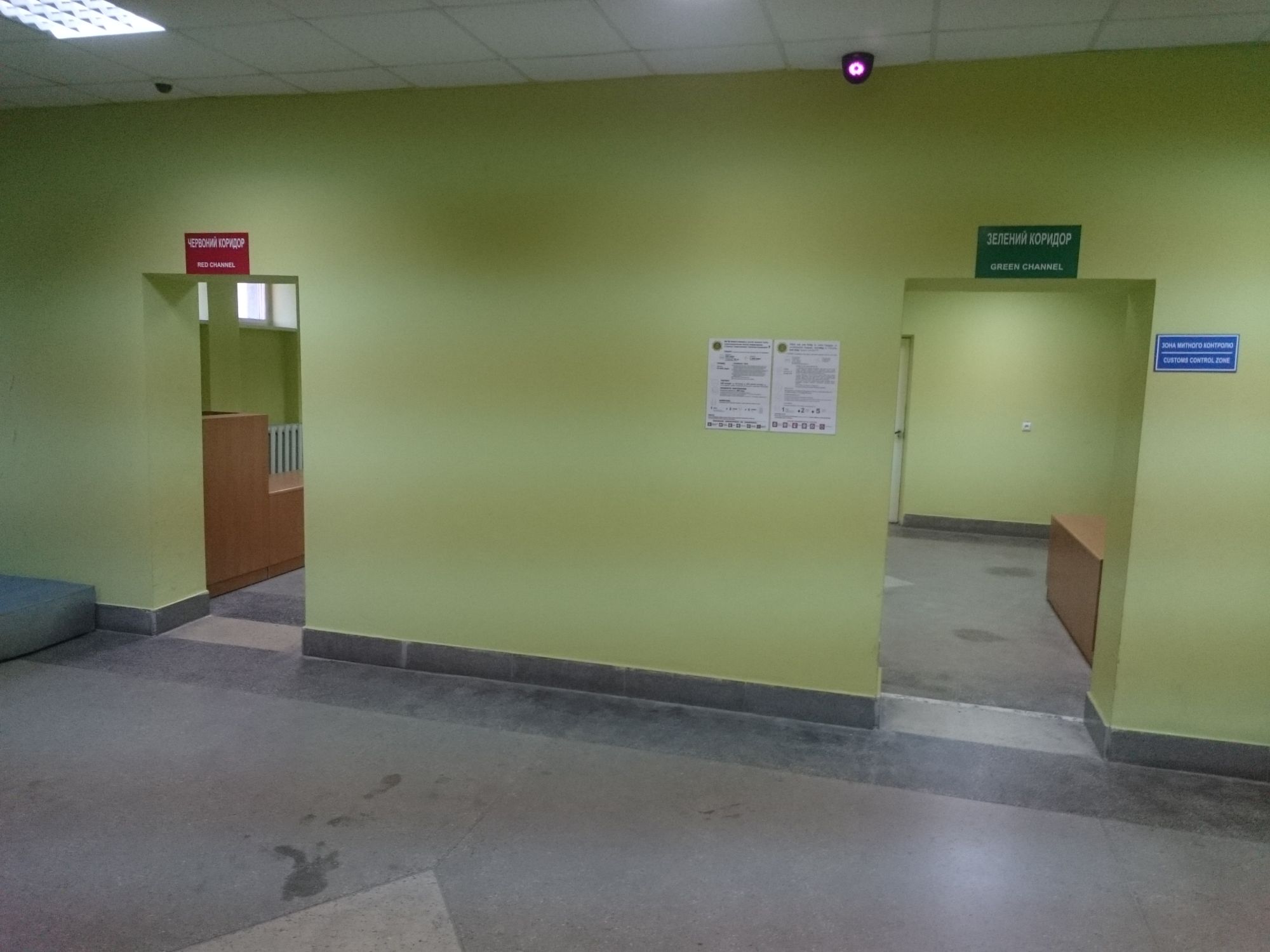 Вылет из Борисполя. Во внутренней зоне вылетов - тишь да гладь. Так как Черновцы - последний рейс, вылетающий несколько позже основной волны внутренних рейсов, то даже за час(!) до вылета рейсов в зоне регистрации - никого. Единственная открытая дверь в зону контроля безопасности - staff only. Ок, пускают туда без особых вопросов. Досмотр на безопасность не выглядит особо тщательным. Компьютер и жидкости доставать не надо, о том, что нужно снять ремень и вынуть все из карманов никто не говорит (хоть я и так все это знаю). Разительный контраст с контролем безопасности на международном вылете.