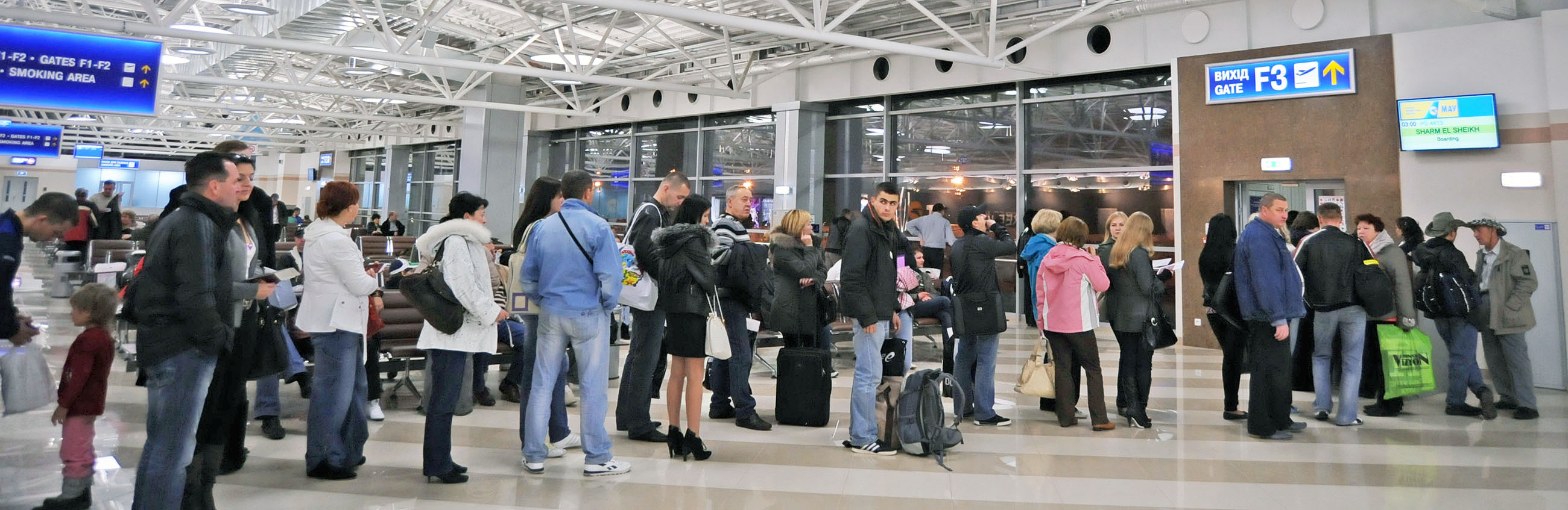 Первыми посетителями нового терминала стали пассажиры авиакомпаний «Международные авиалинии Украины» и UTair. Оба рейса осуществлялись до Шарм-Эль-Шейха.
