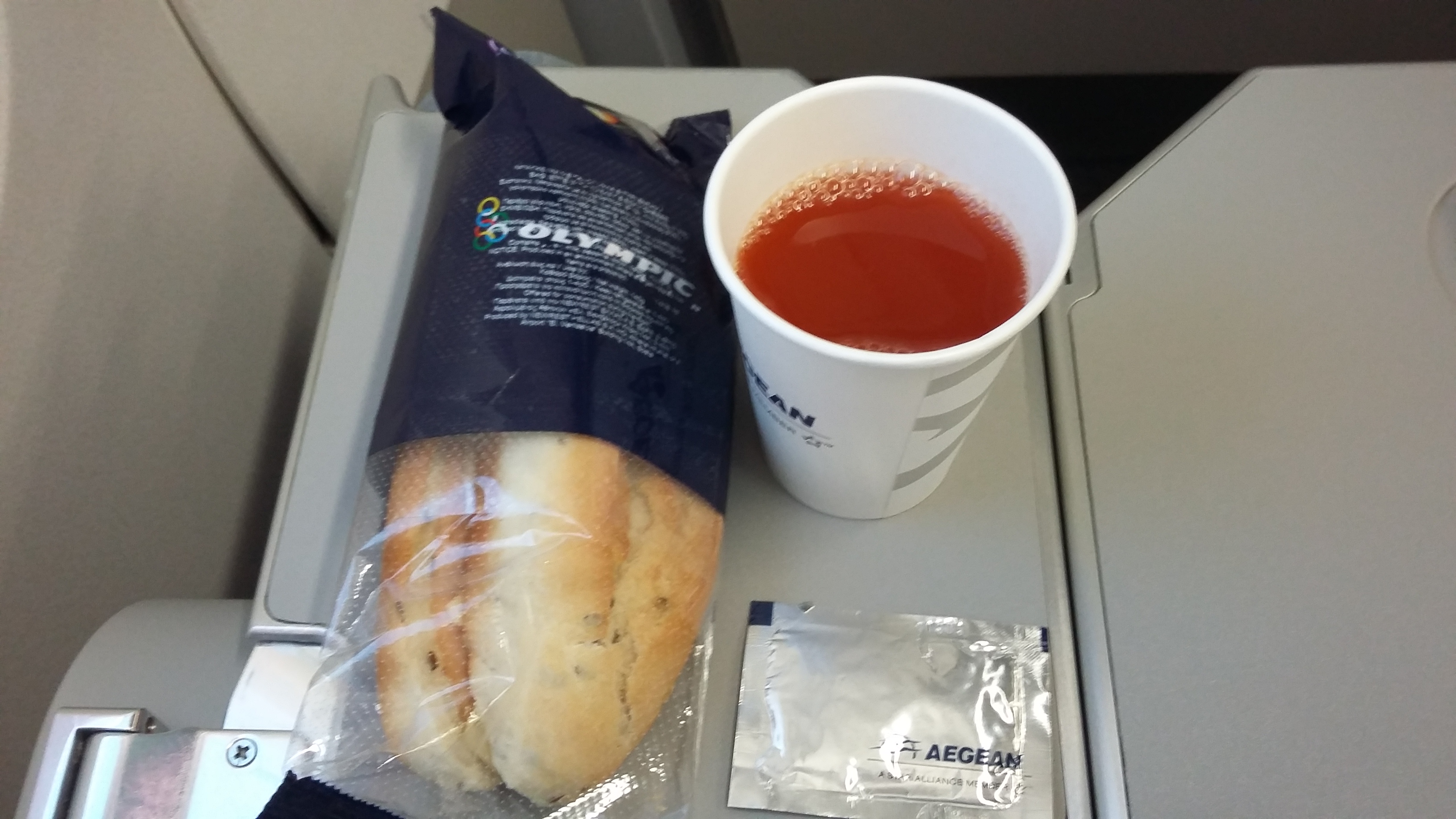 Сендвич с чем-то вроде хумуса с овощами (иранка в соседнем ряду сказала, что это похоже на салат "Оливье" )), конфета, чай/кофе/вода. Оба рейса вечерние. На обратном пути из Тегерана в Баку сендвич был с икрой из кабачков (похоже на домашнюю, вкусно), из Баку в Киев на завтрак вместо макарон был омлет или сосиски с зразами на выбор.