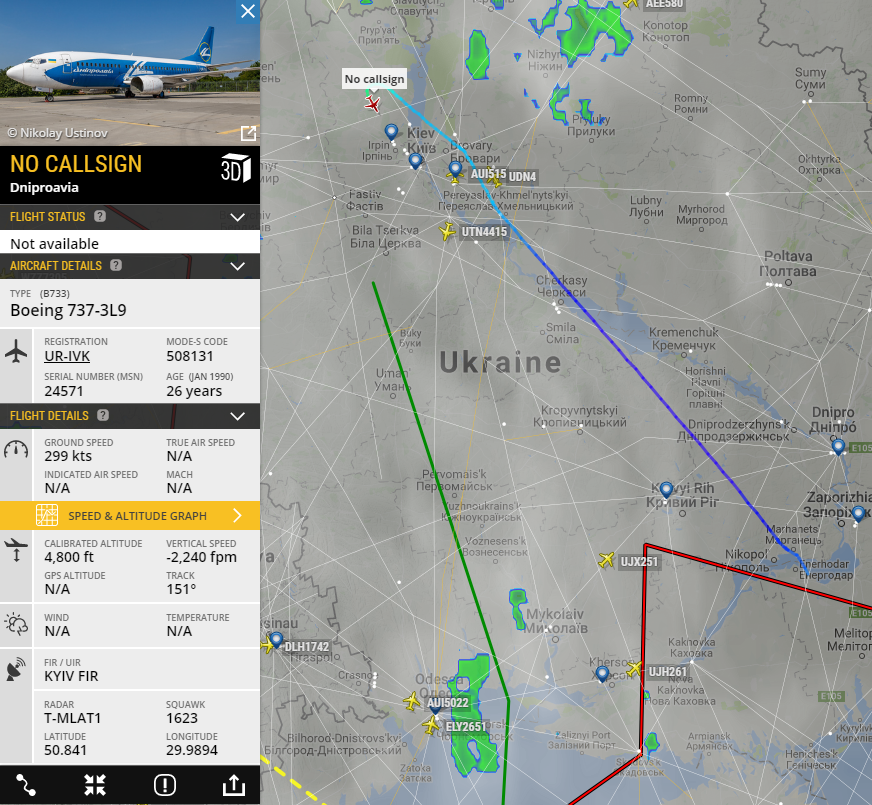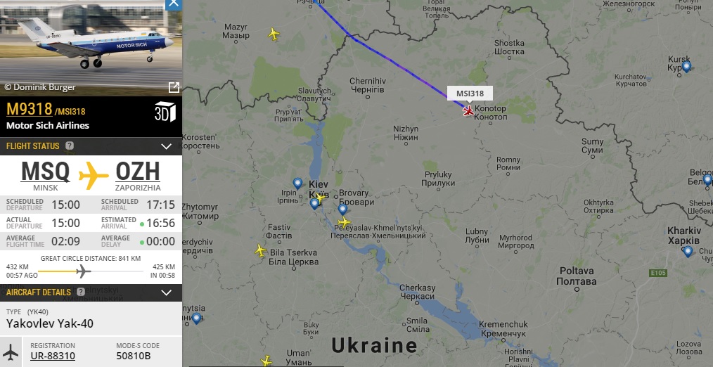Как-то странно в Запорожье Мотор Сич летит, раньше почти все время над Днепром летали.