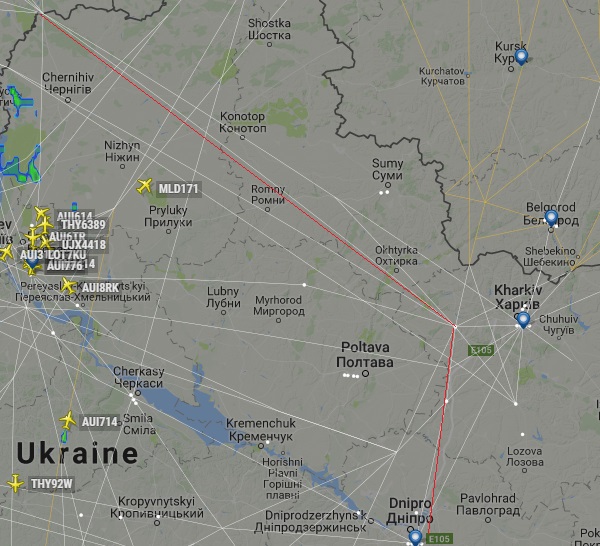 Ничего странного. Обход метеоусловий на территории Беларуси. Далее направление по воздушным трассам. Диспетчера киевской и харьковской зон не направили напрямую по точкам скорей всего из-за трафика.jores писав:Как-то странно в Запорожье Мотор Сич летит, раньше почти все время над Днепром летали.