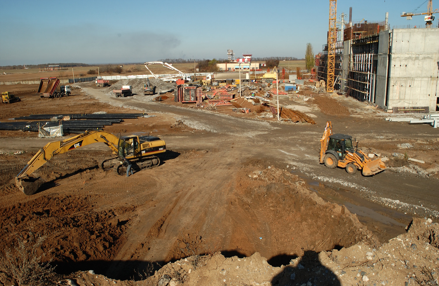 Строительство терминала ведется круглосуточно. На объекте ежедневно задействовано около 400 человек и 35 единиц техники.