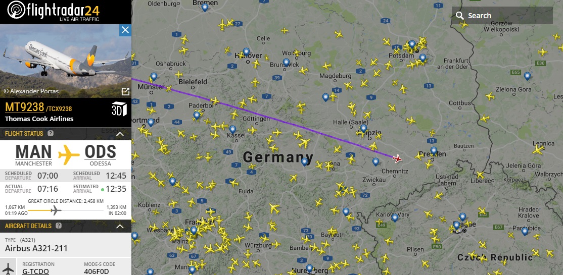 Сайт аэропорта Манчестера накрутил, выставив основной код рейса как Maleth aero. Но он идет в сотрудничестве с Thomas Cook, а это уже видно на FR24. В 7 утра (9 по Украине) вылетел А321 Thomas Cook с фанатами, журналистами и поддержкой команды. Обычно фанаты прилетают в день игры, но тут ранее. Сорри за мой пост выше насчет Maleth aero, Манчестер реально ввел в неизвестность.shushuair писав:Да, в 7 утра из Манчестера по Лондонскому времени вылетел данный рейс в Одессу. Но неясно до сих пор, фаны там или команда...AQS писав:Как я уже здесь упомянул. Манчестер Юнайтед прилетит на чем-то полностью оборудованном под бизнес класс. Это будет В737 от Maleth Aero. 9H-MTF, рейс MT9238. В Одессе где-то между 11-12 сегодня. На 767 Thomas Cook прилетят фанаты в четверг.