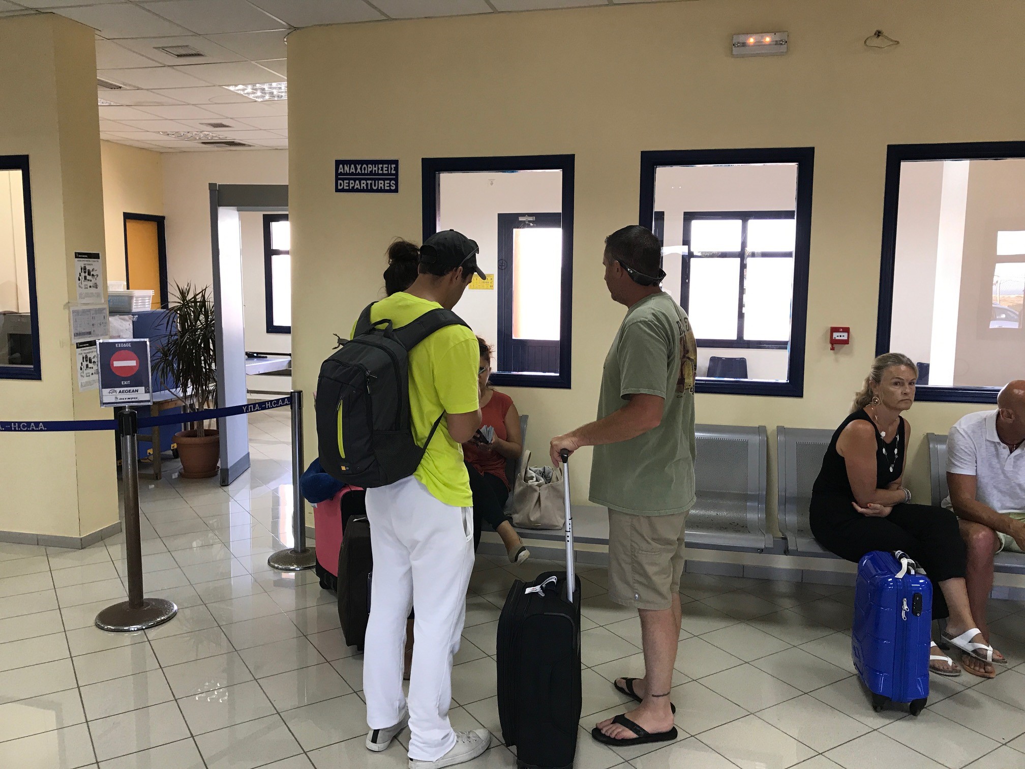 Аэропорт Астипалеи имеет одну ВВП без рулежных дорожек: полоса достаточно широкая, чтобы небольшие борты могли разворачиваться на ней. Несмотря на провинциальность, в аэропорту имеются две автоматические багажные ленты: одна позволяет доставлять чемоданы пассажиров в зону погрузки, вторая находится в зале прилёта. Досмотр и багажа, и ручной клади проводится в присутствии пассажиров местными полицейскими - отдельного подразделения безопасности в аэропорту нет. Излишне говорить о том, что в таких условиях посадка осуществлялась пешком.