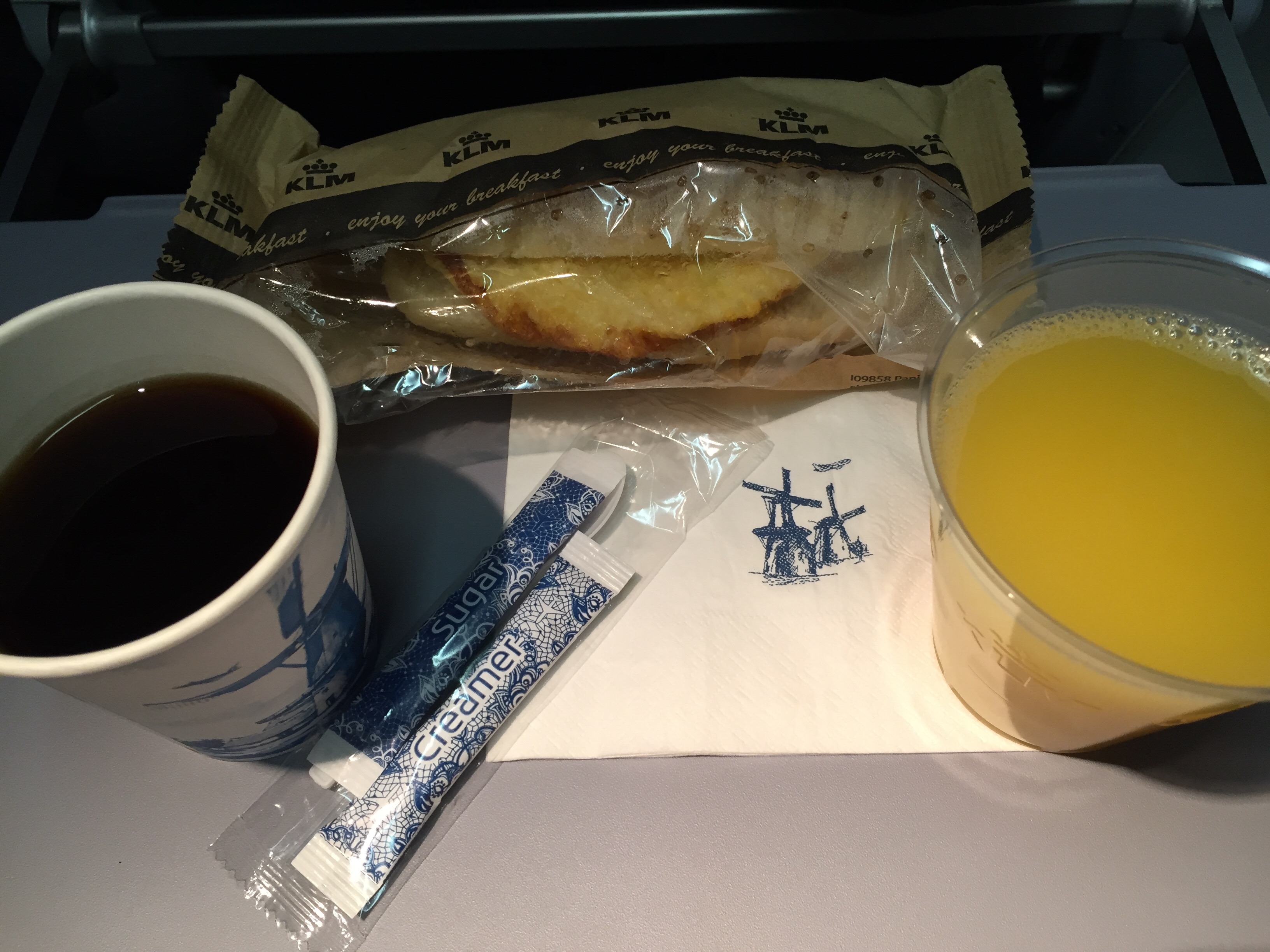 KLM, утренний рейс из Киева: горячий сендвич с сыром, кекс.