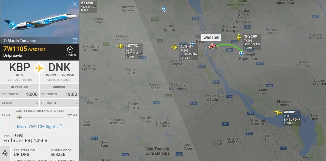 ВС перегоняется в Жуляны для перевоза Шахтера в Харьков на матч с Александрией. Вылет в 18.00. В последнее время Шахтер все чаще использует WRC и их ERJ145 для внутренних перелетов. В прошлом сезоне в процентах 80, это был DART и А320.