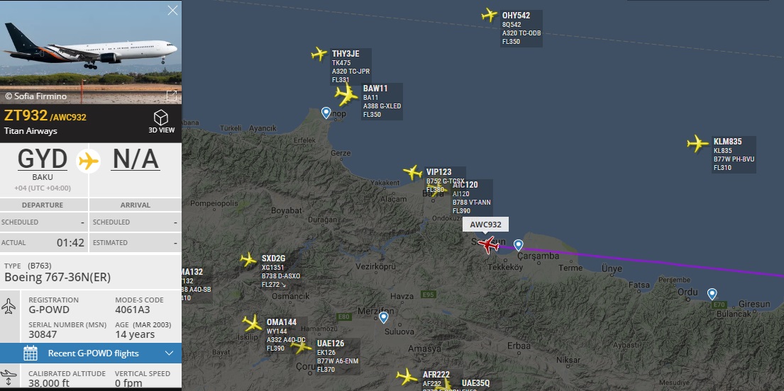 На той момент вони вже були зайняті...artml писав:Хіба 757 та 767 не здатні долетіти до Астани? Там ~3500 миль, обидва літаки таку дистанцію мають спокійно долати, особливо 767.AQS писав:Villareal – данной команде предстоял 6,5 часовой вояж в Астану, поэтому пришлось фрахтовать что-то большое. А340 9H-BIG Air X Charter вижу впервые на футбольных чартерах. Борт ожидал команду в Астане больше суток. До этого рейса команда пользовалась самолетами испанской Privilege Style 757, 767.