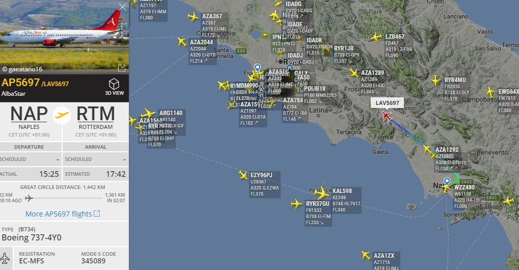 Napoli (Feyenoord) – второй раз команда пользуется услугами Albastar. Один разок летали на Merediana. Борт выгрузил команду и ушел на рейсы.