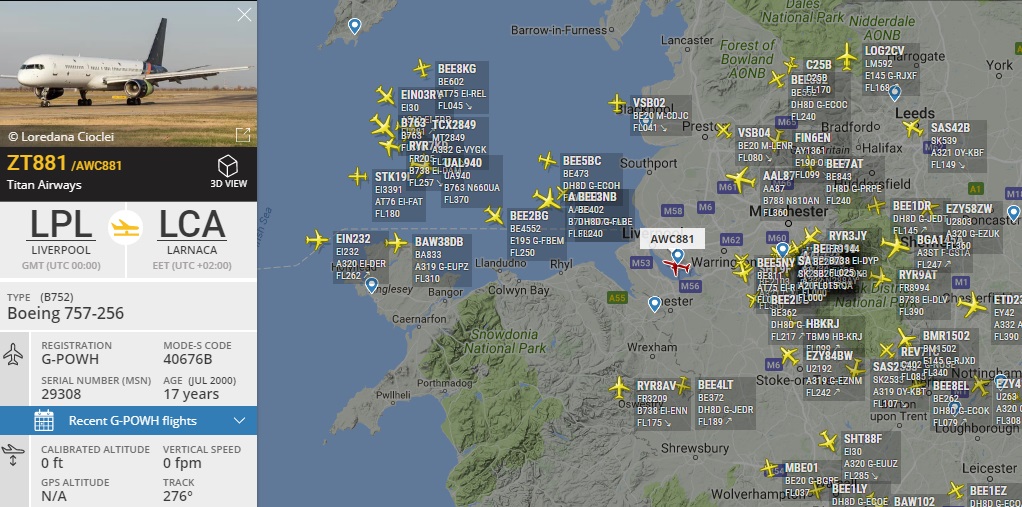 Everton (Appolon) – команда обычно летала на вс от Maleth Aero, но сейчас это старый знакомый G-POWH от Titan airways. Данный вс отвезет команду и улетит в Харьков забирать Ман Сити. Складывается впечатление, что в этом году в Британии поубавилось бортов для команд и они используют G-POWH в разнос. В прошлом году выбор был гораздо больше и ярче.