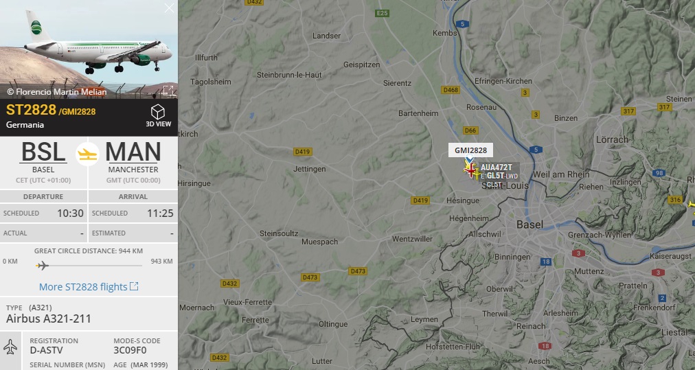 Утром в 11.30 Базель вылетел в Манчестер на игру против МанСити. А321 от Germania. Базель использует разные авиакомпании на чартерах.