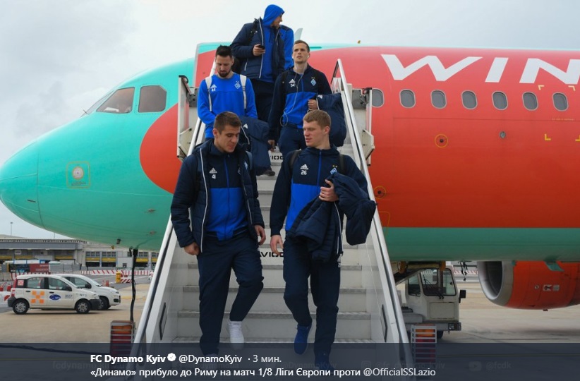 В 8.00 Динамо (Киев) должно было вылететь в Рим. Но вылет задержался до 11.00. Команда как обычно летела на Розе ветров.