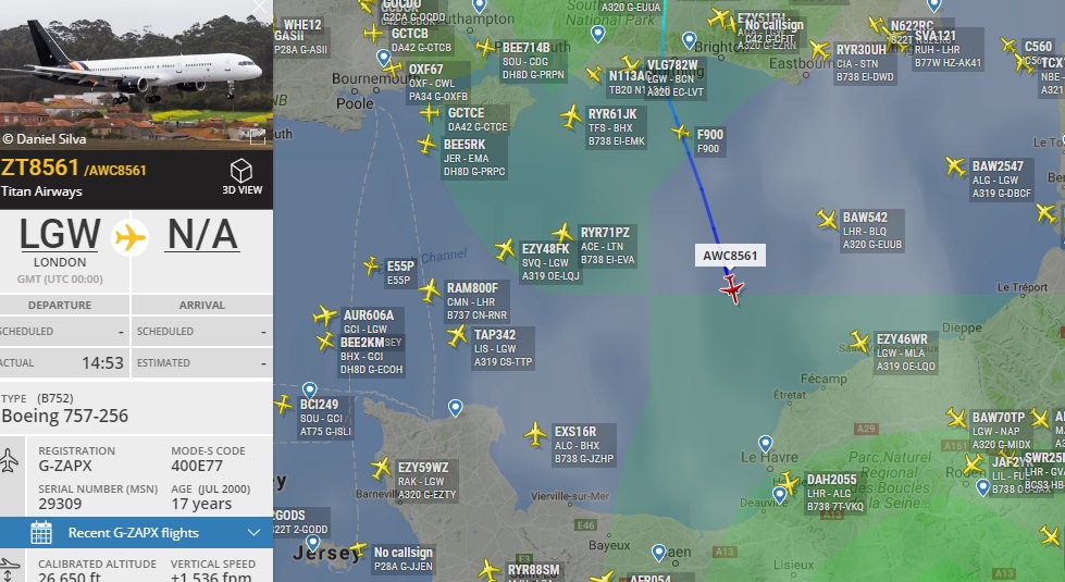 Команда Челси вылетела в Барселону на игру Лиги Чемпионов, как обычно на 757 от Titan Airways