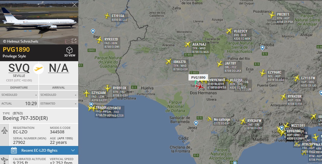 Севилья вылетела в Мюнхен на игру против Баварии на 767 EC-LZO от Privilege Style. Команда отлетала всю ЛЧ именно на этом борту.