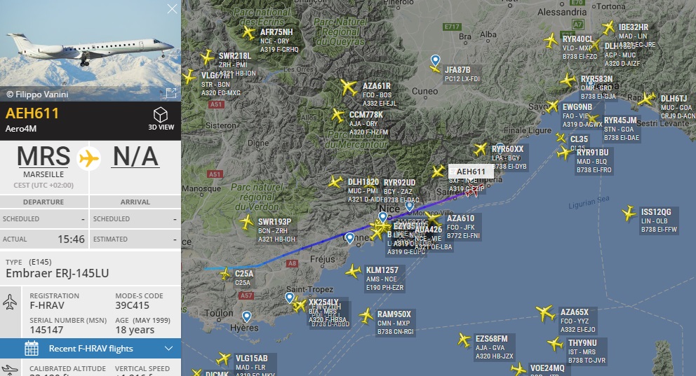 В 12.00 Марсель вылетела на матч против Атлетика из Бильбао на ERJ-145 от Аero3M. Команда часто использует ERJ-145 Enhance Aero и Aero3M в еврокубках.