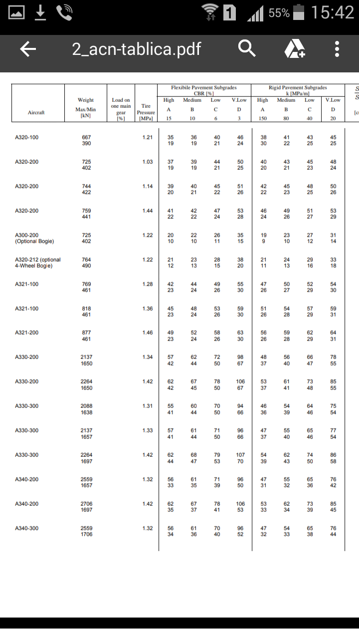 ACN 738 и 320 отличаются на большее число, чем MTOW. 738 не проходит в макс загрузке. Дубай имеет бизнес класс и заливают их не до пробок, Дубай не на максимальной дальности находится. Как раз около 3 тонн экономии в весе. Там в расчете ACN еще и давление в шинах учитывается. Не все так просто.AQS писав: ↑28 квітня 2018, 14:49MTOW A320 77 тоннalex.s писав: ↑28 квітня 2018, 09:44 Тут надо рассматривать числа PCN/ACN. По моим прикидкам, 321-200 будет проходить при 78% от максимального взлетного. А это 73 тонны всего. То есть, либо будут нарушать по PCN, либо взлетать на Польшу с 5 тоннами топлива всего. Превышение PCN само по себе не критично, просто ведет к более быстрому выходу ВПП из эксплуатации. Собственник ВПП - государство. Наверное, договорились